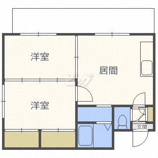 | 南向きで日当たり良好の2DKです!木造や鉄骨造に比べ、防音性能が高い、鉄筋コンクリート造です。 |
