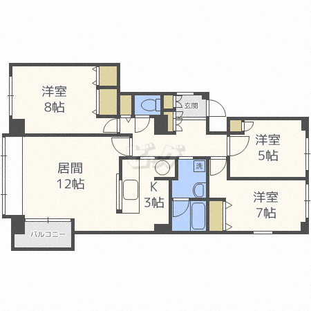 | バルコニー付きの3LDKのお部屋です!エレベーター付きですので、引っ越しの際もラクラクです! |